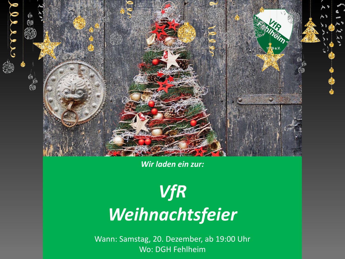 Wir laden ein zur: VfR Weihnachtsfeier am 20.12.2025 um 19:00 Uhr im DGH Fehlheim